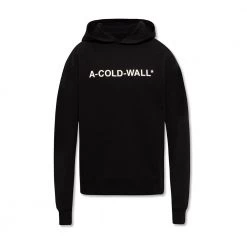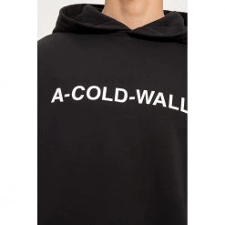 Svart hettegenser fra A-Caint-Wall*. Denne stilen er laget av bomullstrÞye, og har et hvitt grafisk mÞnster med merkets logo og elastisk trimmer pÄ bunnen og mansjettene.