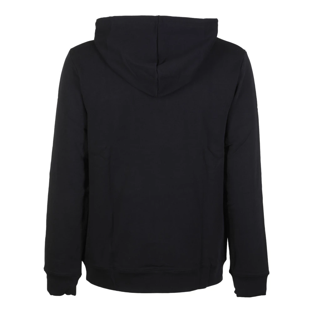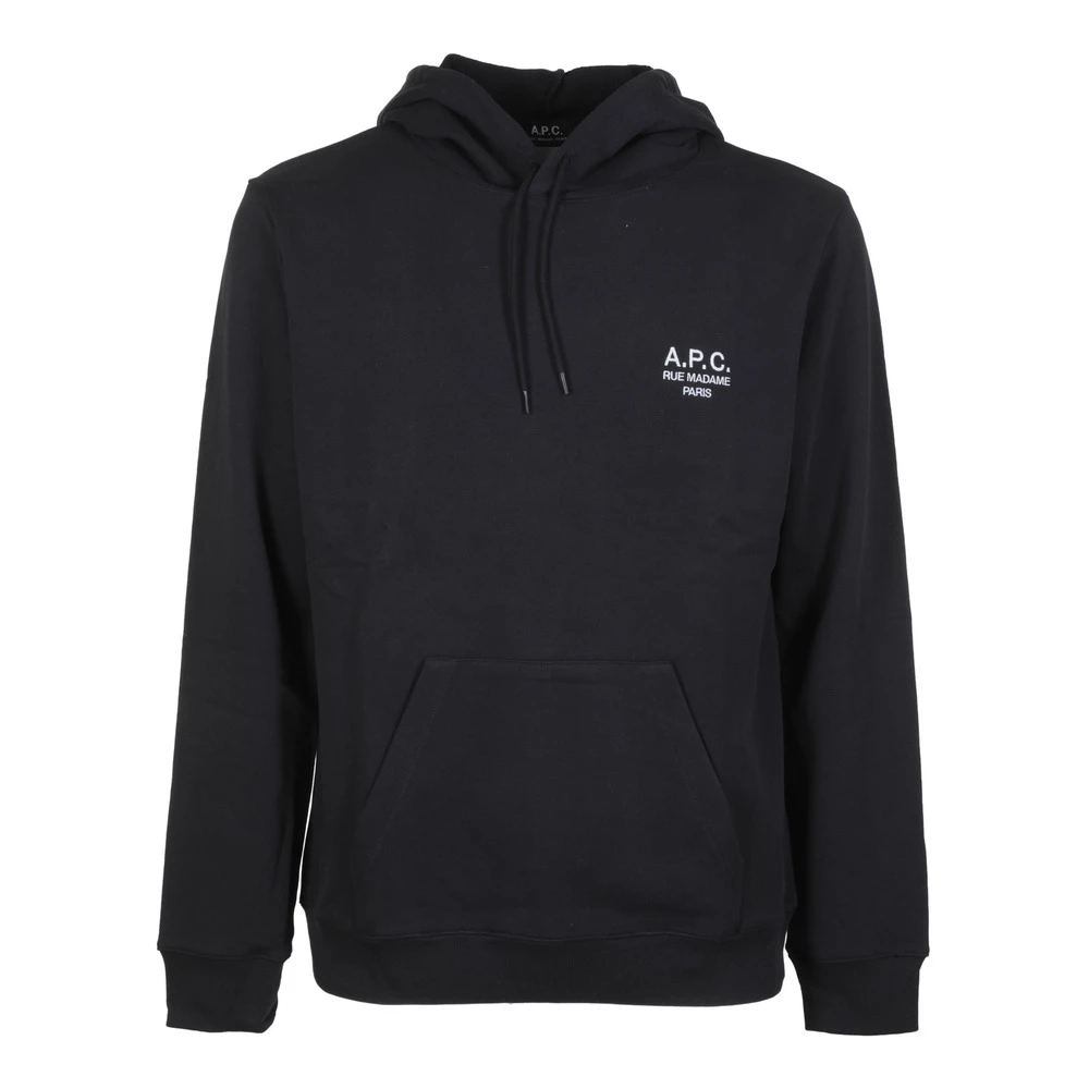 A.P.C. Svart bomullssweatshirt, hette med snor, frontlomme, ribbet kanter, logo pÄ brystet.