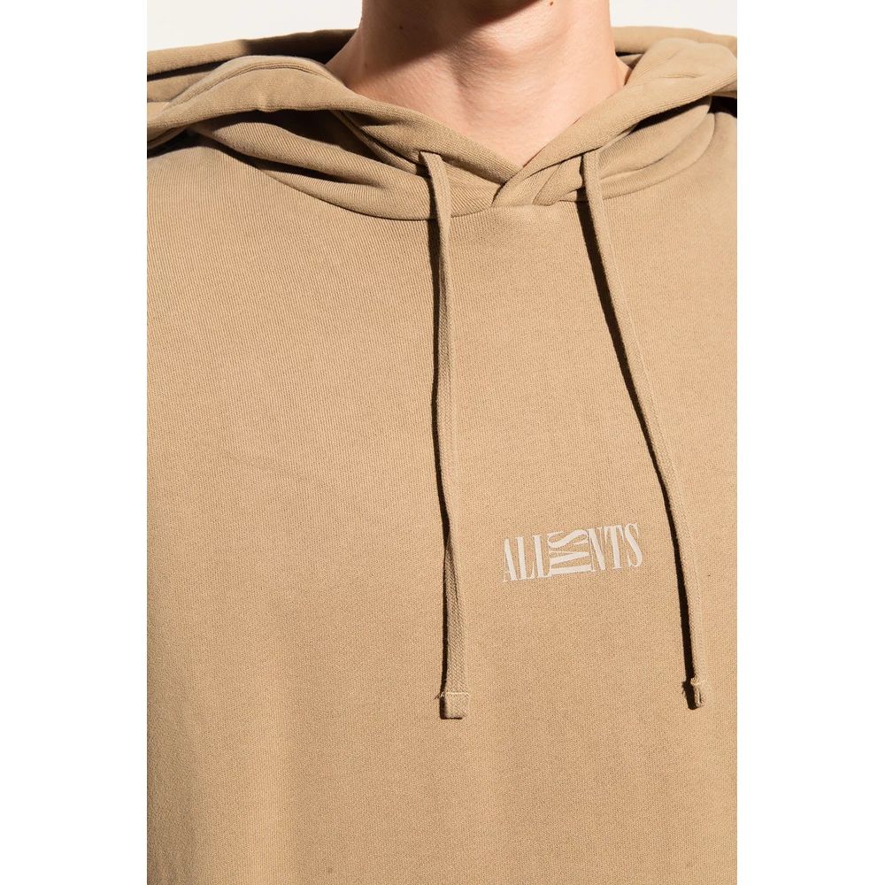 Beige og Gray âopposisjonâ -sweatshirt med en trekningsjusterbar hette fra AllSaints. Denne hettegenseren er laget av bomull og viser en lysegrĂ„ grafisk logotrykk og en kengurulomme pĂ„ fronten og ribbet trims pĂ„ bunnen og mansjettene.