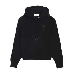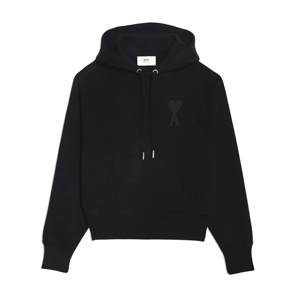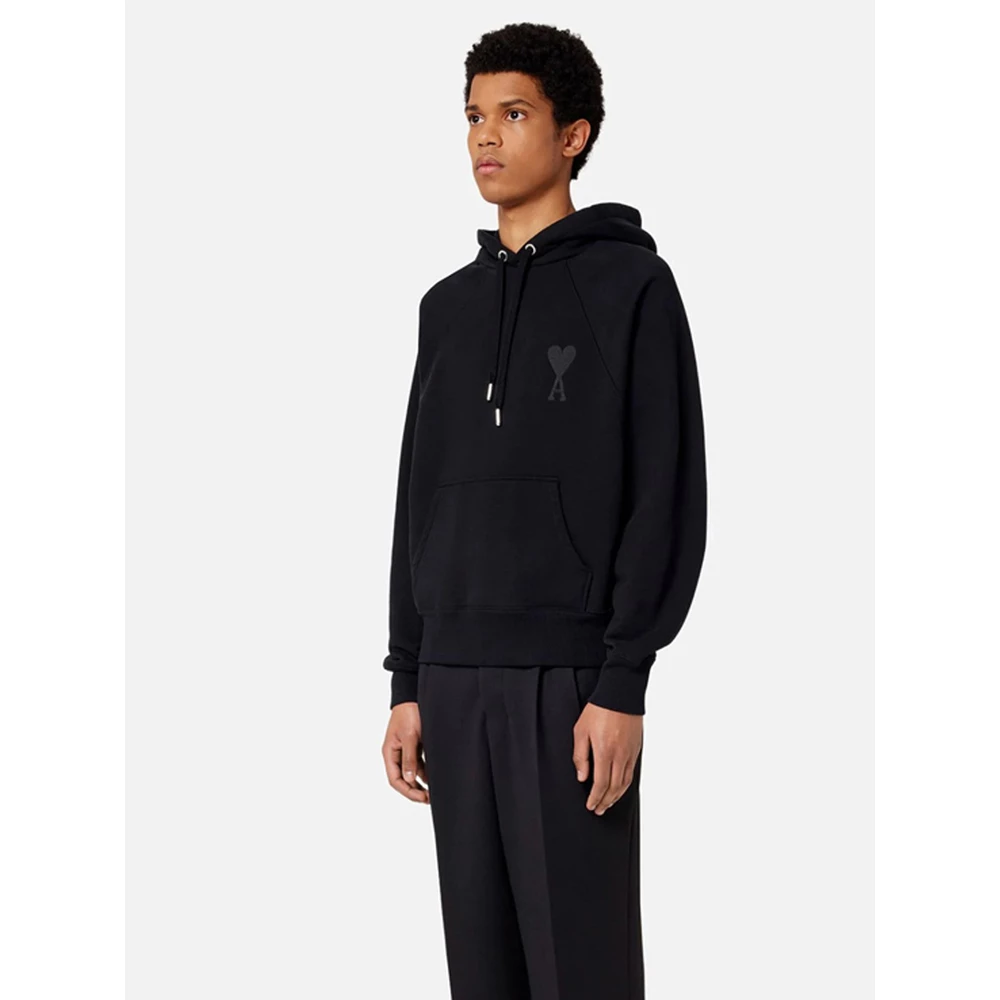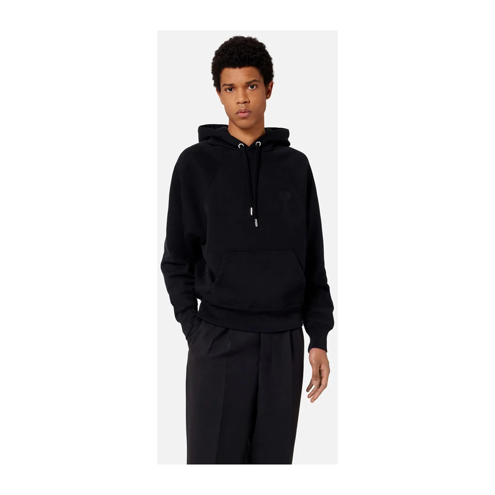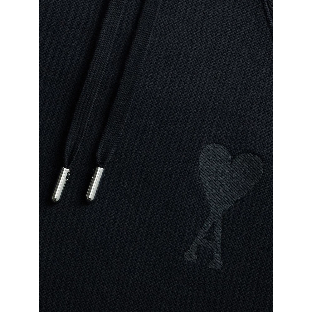 Ami Alexandre Matiussi Gensere Black Ami de Coeur Uni Black Sweatshirt av Ami-Alexandre Mattiussi i bomull med snorhet hette, tone-pÄ-tone hjertelogo brodert pÄ brystet, kenguruen foran og ribbet elastisk hem og mansjetter.