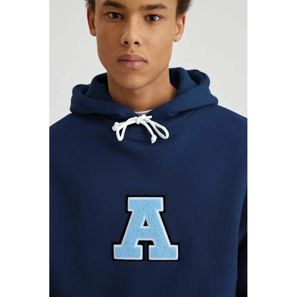 Catch-hettegenseren presenterer en tidlÞs silhuett med en sentrert frotté varsity A patch-merke. Hettegenseren er laget av 100 % Þkologisk bomull med hette med snÞring og lomme. Toumane er 186 cm og har pÄ seg stÞrrelse M.