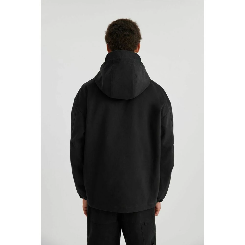 Den metriske anorakken er laget av bomull og har en avslappet profil ferdig med en beskyttende hette og justerbar snÞring gjennom falden. Den er designet med senkede skuldre for Ä sikre at den legger seg komfortabelt. Toumane er 186 cm og har pÄ seg stÞrrelse M.