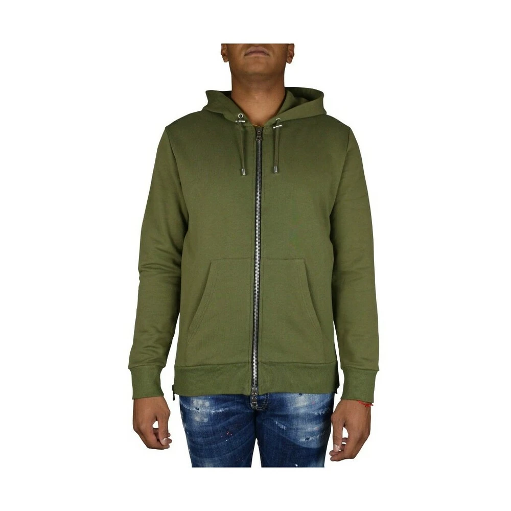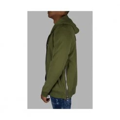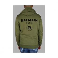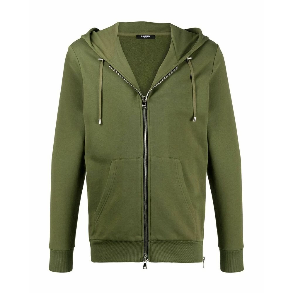 Balmain Khaki Cardigan med hette. Sort Balmain Logo pÄ Back.lynlÄning i sidene.nore i hetten. Fronten.