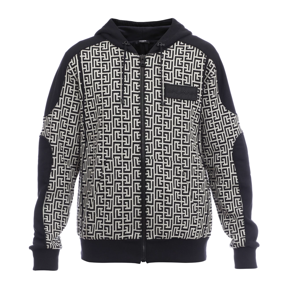 Zip hettegensere er et must denne sesongen. Denne zip -hettegenseren fra Balmain treffer merket nĂ„r det kommer til stil. Monogramdesignet, som hyller grunnlegger Pierre Balmain, gir et moderne preg pĂ„ jakken. Jakken har et rett kutt, hette, sidelommer og ribbet detaljer om hem og mansjetter. pĂ„ hem Mansjetter – sidelommer – laget i Frankrike