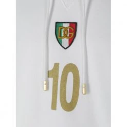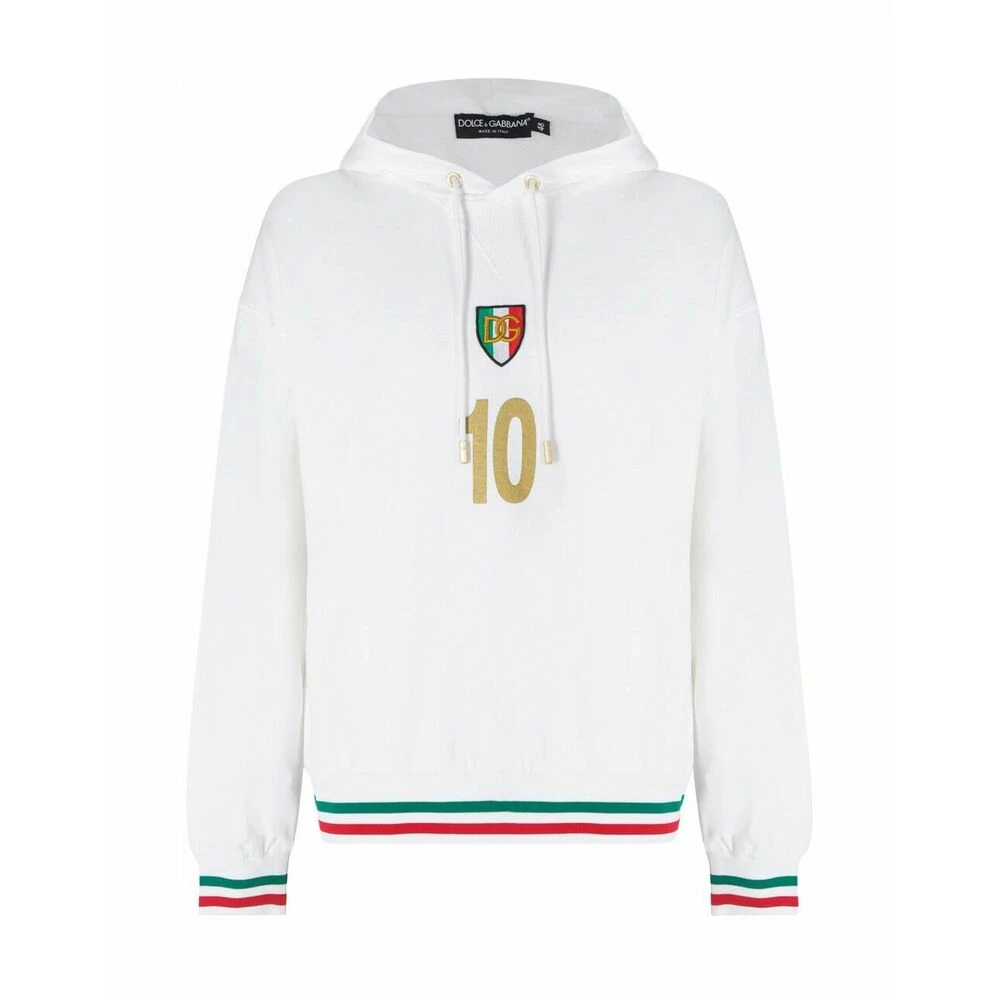 Hvit hettegenser fra Dolce & Gabbana. Dette plagget er laget av bomull, og har en trykk, lapp, logo, trekkstringhette og ribbestrikkede trimmer ved hemmen og mansjettene.