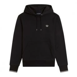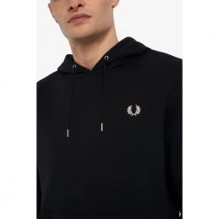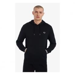 En hette laget i bomull og polyester bouclé, toppet med vår grense med to striper på knyttneve. Polyester Boucl og Cotton Straight Cut Hood med justerbare ledninger Pocket Kangaroo Mansjetter med to striper teller legenden om at en Lillywhites-klient bedt om å tilpasse en jevn polo av Fred Perry med fargene på hans fotballag og ble dermed født vår grense med to striper. Dette elementet er en del av vårt DNA, siden vi bare bruker den i tykkelsesforholdet 5-4-4. Hettegenser, designet med våre umiskjennelige detaljer, presenterer robetten med to striper og laurbærkronen brodert i en matchende farge. Absolutt Fred Perry.