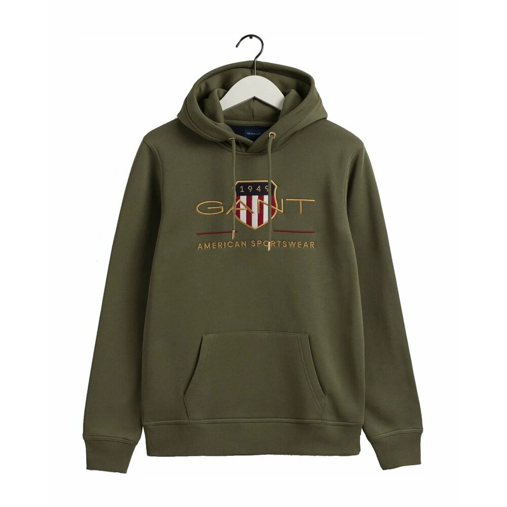 Archive Shield Hoodie fra Gant. En stilig og klassisk hoodie med gulldetaljer og merkets logo, i en av vÄrens populÊre farger. Hettegenser som passer bÄde til jeans og joggebukser. Mykt og deilig stoff. Normal i stÞrrelsen. Materiale: 87 % Bomull, 13 % Polyester