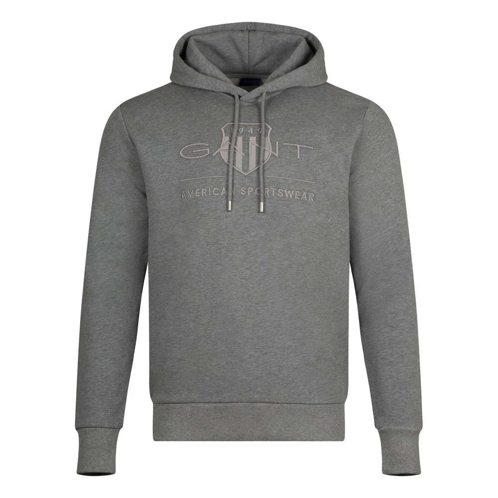 D1. Tonal Archive Shield Hood fra GANT. Klassisk hettegenser fra GANT, med den ikoniske Archive Shield-logoen brodert ton-i-ton pÄ brystet. Et perfekt tilskudd til den klassiske og tidlÞse preppy stilen. Materiale: 100% bomull