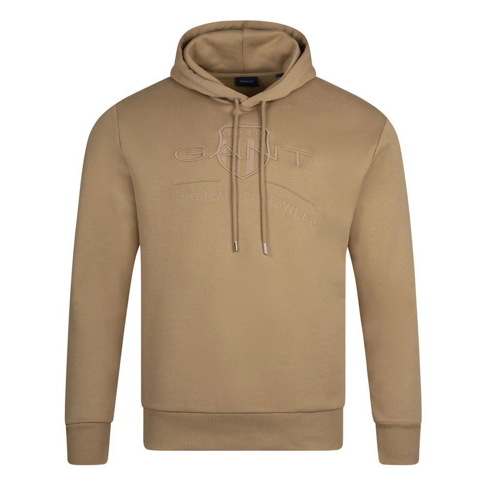 D1. Tonal Archive Shield Hood fra GANT. Klassisk hettegenser fra GANT, med den ikoniske Archive Shield-logoen brodert ton-i-ton pÄ brystet. Et perfekt tilskudd til den klassiske og tidlÞse preppy stilen. Materiale: 100% bomull