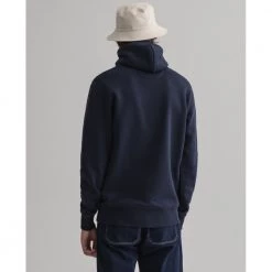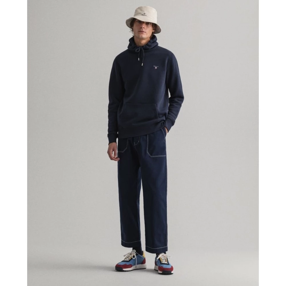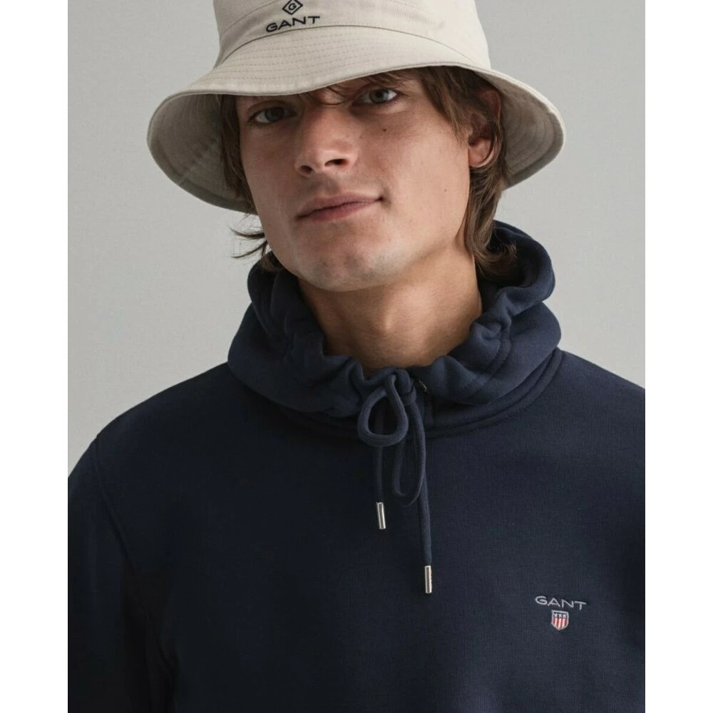 Original Sweat Hoodie fra GANT. En enkel og behagelig genser til avslappende dager. Hettegenseren har den klassiske GANT-logoen brodert pÄ brystet. Vi ser for oss denne med denim eller oppbrettede chinos for en preppy, avslappet stil. GANT Original Sweat Hoodie Evening Blue Normal passform Modellen er 186 og har pÄ seg stÞrrelse M Myk, bÞrstet innside Kengurulomme Brodert GANT-logo pÄ brystet Middels tykk bomullsjersey 87% Bomull 13% Polyester 40 grader Vaskes og strykes med innsiden ut Artikkelnummer 2047017 433