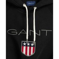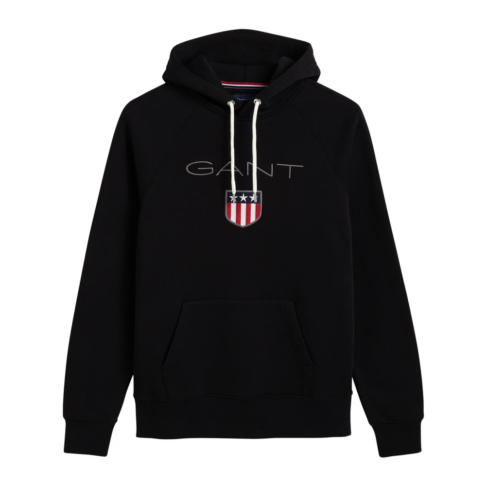 Shield Hoodie fra Gant. Deilig hettegenser med rund hals og stropper. Logo pÄ brystet og normal fit. Perfekt genser Ä reise i eller brukte til hverdags. Normal i stÞrrelsen. Materiale: 87 % Bomull, 13 % Polyester