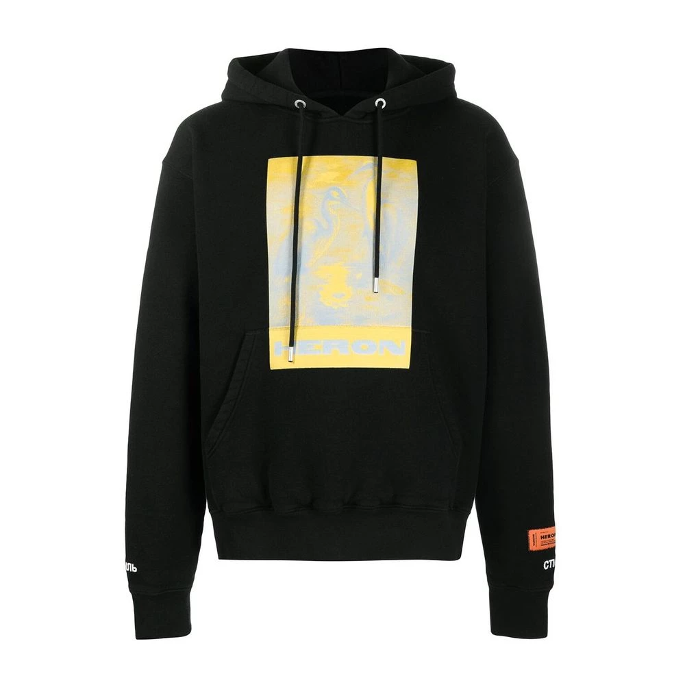 Heron Preston Gensere Svart Svart bomull Litho hettegenser i bomull fra HERON PRESTON med grafisk print logo lapp pÄ ermet, hette med snÞring, lange ermer, ribbet mansjetter og rett kant.