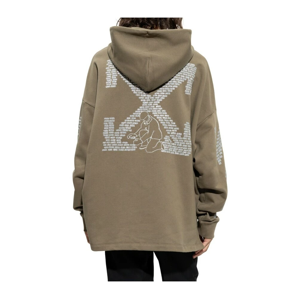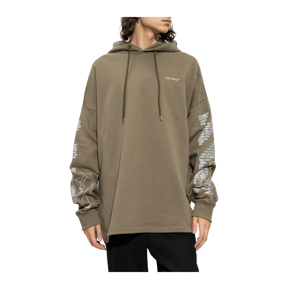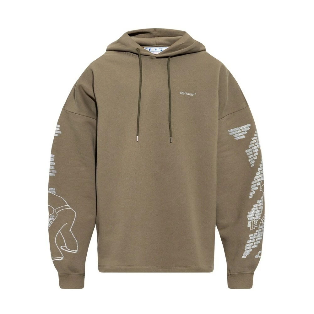 Off White Hoodie With Logo Green