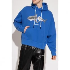 Palm Angels Logo Hoodie Blue