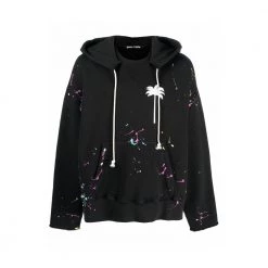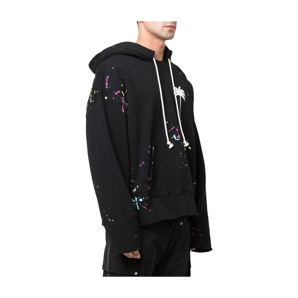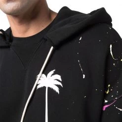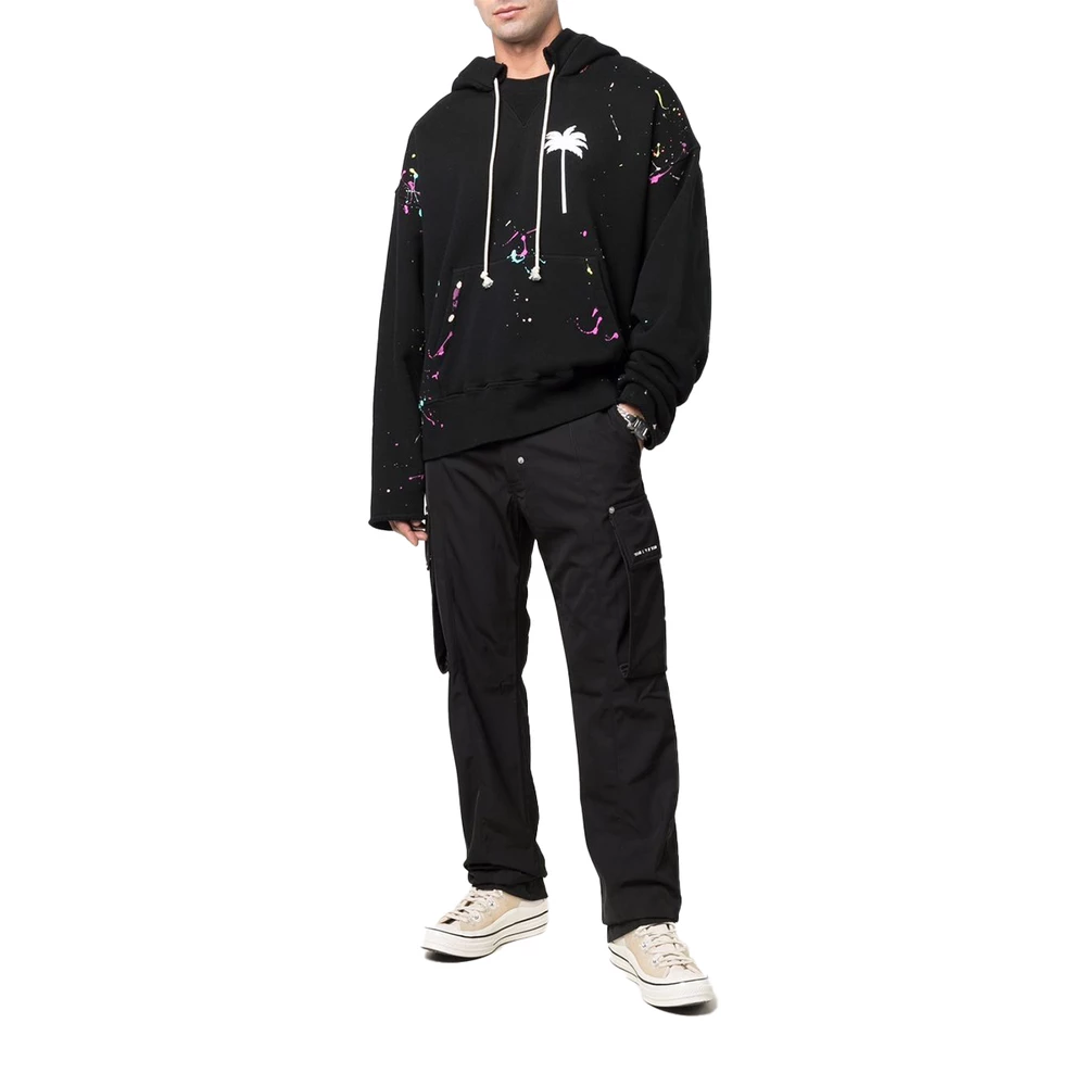 Palm Angels Palm Print Paint Splatter Effect Hoodie Black