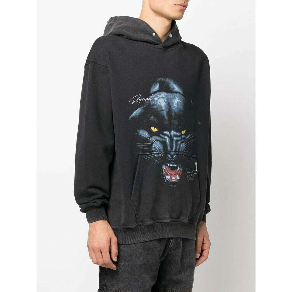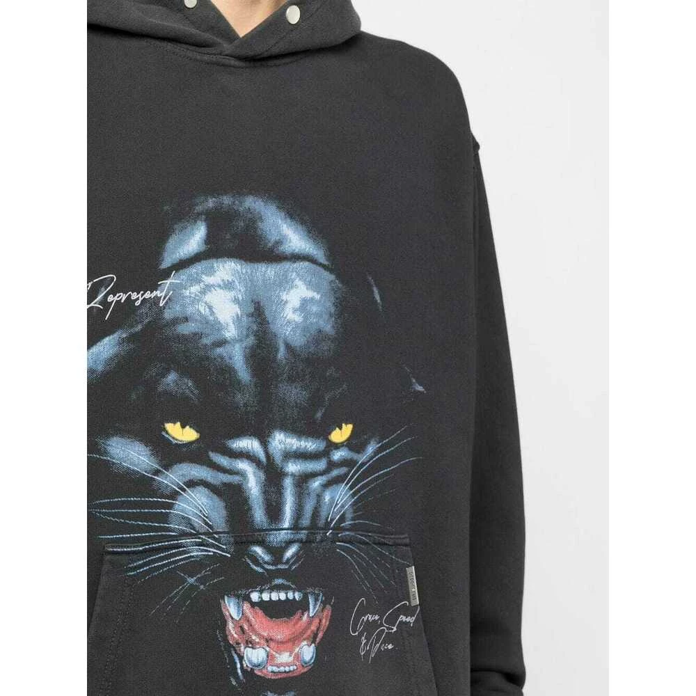 Representer gensere svart/multikolor bomull hettegenser fra Represent med grafisk trykk foran, logo -trykk foran, klassisk hette, glidelomme foran, lange ermer og rett hem.