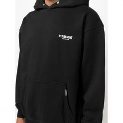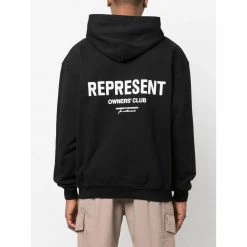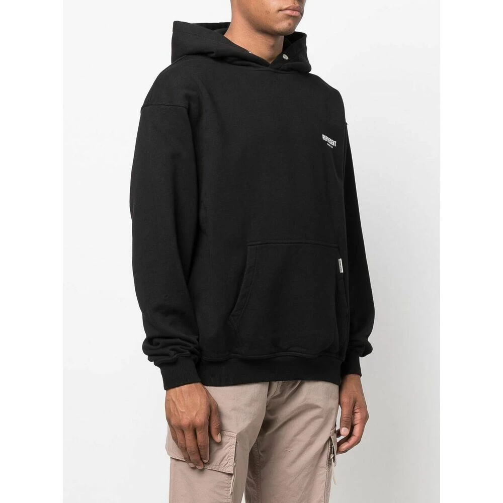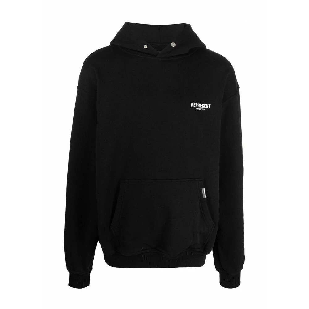 Representere gensere svart/hvit bomull hettegenser fra Represention med logo-trykk pÄ brystet, logo-trykk pÄ bak, klassisk hette, lange ermer, utstyrte hylser, rett hem og frontposen.