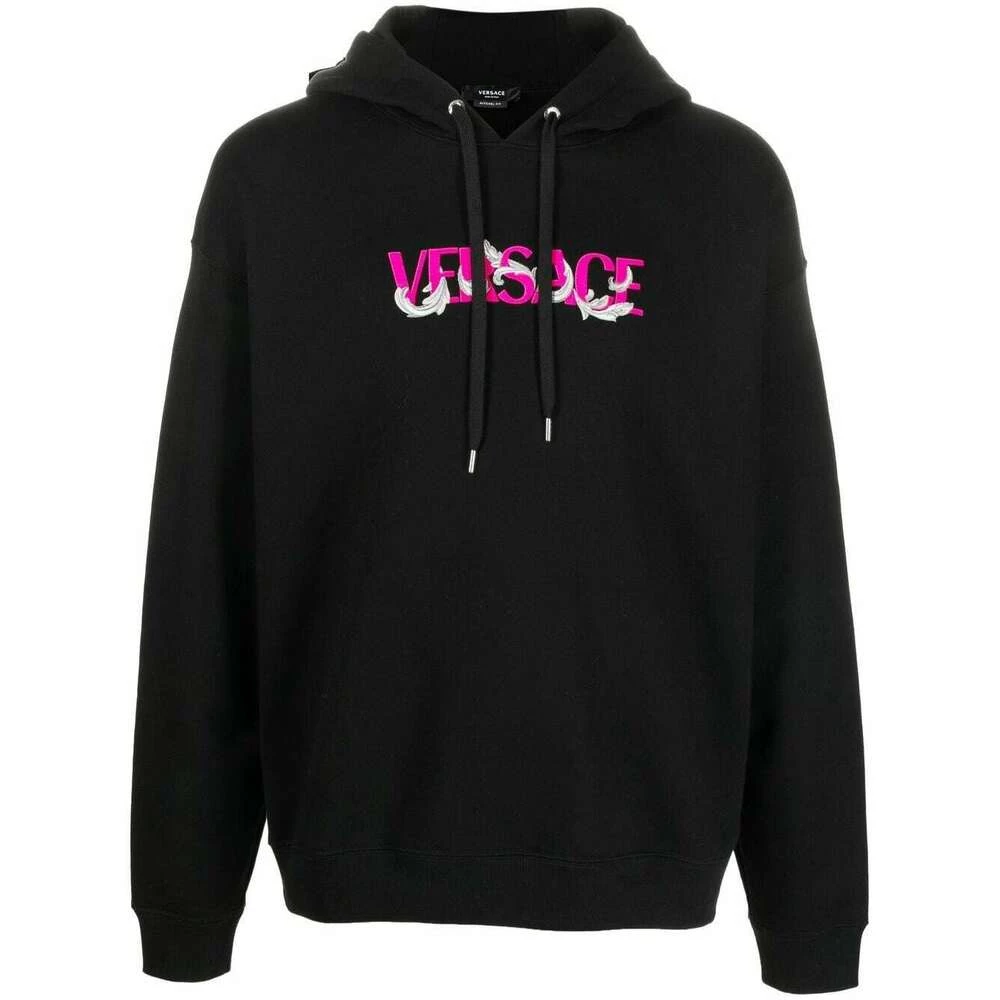 Versace gensere Svart logo-yrkende trinnstring hettegenser fra Versace med svart, bomull, brodert logo ved brystet, trinnhette, lange ermer, utstyrte hylser og ribbet hem.